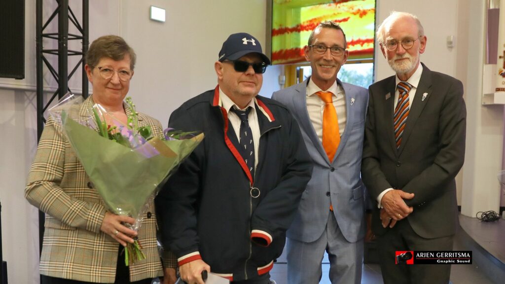 De heer van de Veen werd gehuldigd door de KBOV voor zijn verdiensten © Arjen Gerritsma. V.l.n.r. Mevrouw van de Veen, Ronald van de Veen, Marko van der Zwaag, de heer Slagboom.