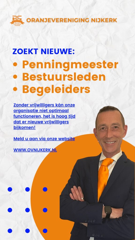 Meld u aan, zonder deze toppers komt een traditie als Koningsdag in het geding. Dat willen wij toch niet? © M. van der Zwaag Lees ook: Op zoek naar 110 jaar oude vaandel